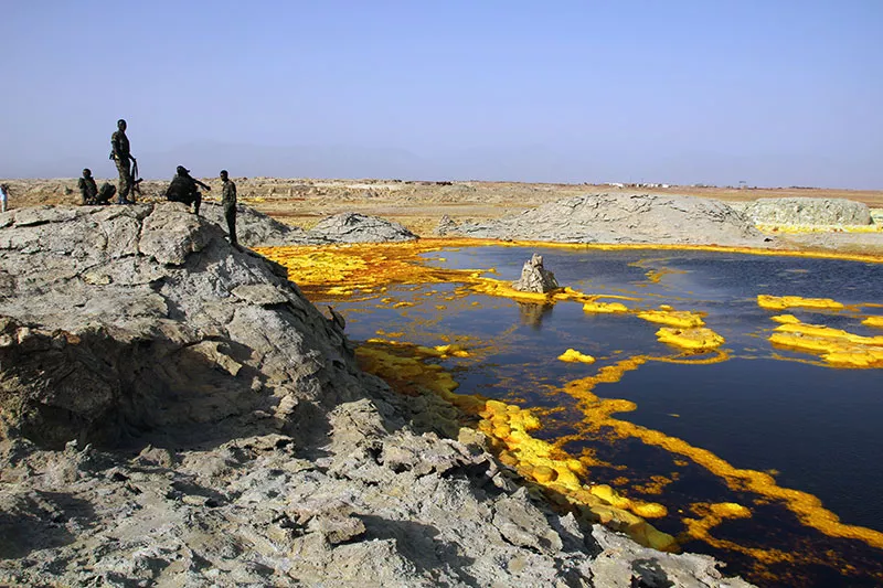 Experience the extreme landscapes of Ethiopia's Danakil Depression. Witness the unique Erta Ale volcano, visit the colorful Dallol salt flats, and explore the hypersaline Lake Afdera.
